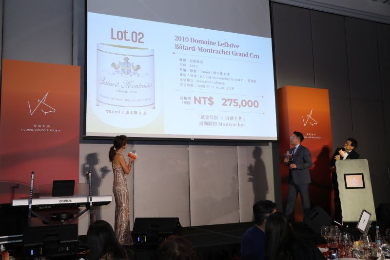 拍賣由享有「台灣首席拍賣官」美譽的 陸潔民 掌槌,拍品包含多款稀有勃根地整桶酒與名莊珍釀,吸引現場貴賓熱情競標,最終二十件拍品全數順利拍出,結算落槌價與起拍價之差額後,總計將捐出150萬元善款,展現藏家對葡萄酒文化與公益行動的支持。