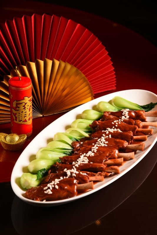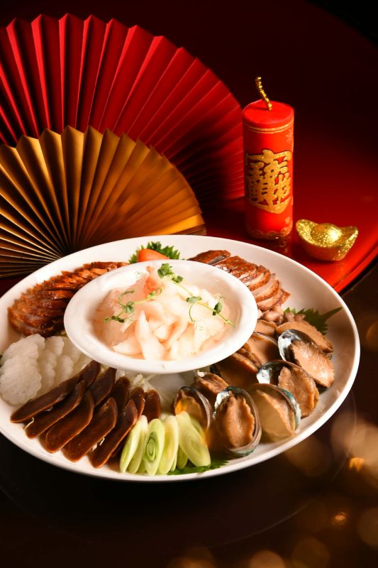 鎮場燉品「百福臨門鮑魚佛跳牆」寓意百福臨門。開運涼菜是香氣濃郁、彈牙鮮美的「招財冰鎮紹興醉蝦」。傳承硬菜的「年豐醬燒豬腱骨」象徵豐年有餘。