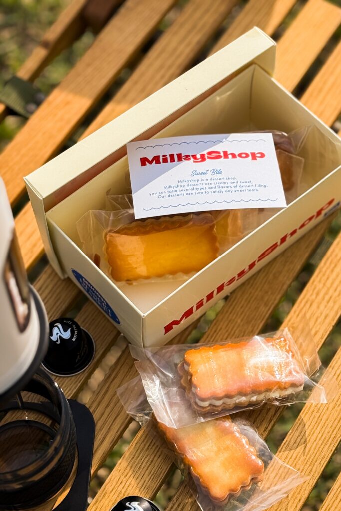 《MilkyShop》在韓國社群(IG/TikTok)上擁有極高聲譽,隨便搜尋都是「#성수동맛집」(聖水洞美食)的首選推薦。不少旅韓網友回台後紛紛感嘆:「那種酥脆感回不去了」、「焦糖跟鹹奶油簡直是神仙組合,完全甜而不膩」。豆府集團表示,為了還原最道地的口感,焦糖奶油夾心餅全程低溫冷凍運送;其特色在於法式花邊餅乾的極致酥脆,搭配由韓國純鮮奶製成的濃郁鹹奶油內餡。知名美食部落客試吃後評鑑道:「第一口是焦糖的苦甜香氣,接著鹹奶油的奶香在舌尖炸開,鹹甜比例拿捏得極其精準,完全不膩口,冷凍後吃更有種高訂版冰淇淋夾心的錯覺!」。Netflix《單身即地獄4》影集中,被譽為「天堂島首選」、「健康版TWICE Sana」的裴智妍也公開分享自己是忠實粉絲,更私心分享,將夾心餅冷凍享用,焦糖奶油內餡口感近似綿密的冰淇淋,搭配酥脆的餅乾,層次感更加豐富,絕對是追劇或下午茶的最佳選擇。